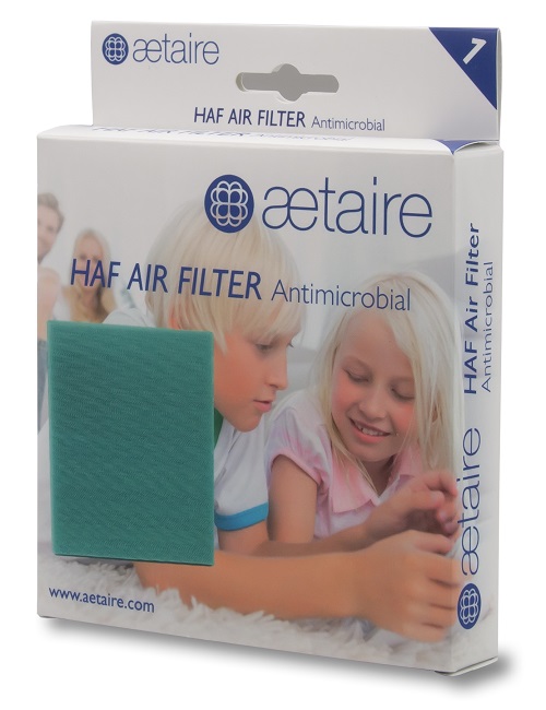 The air drawn in by the Aetaire first passes passes through the Aetaire High Air Flow (HAF) filter. This special filter contains an antimicrobial film layer that prevents the growth of various infectious substances on the filter. The antimicrobial media slows the rate at which the filter becomes clogged, thereby increasing its service life.
