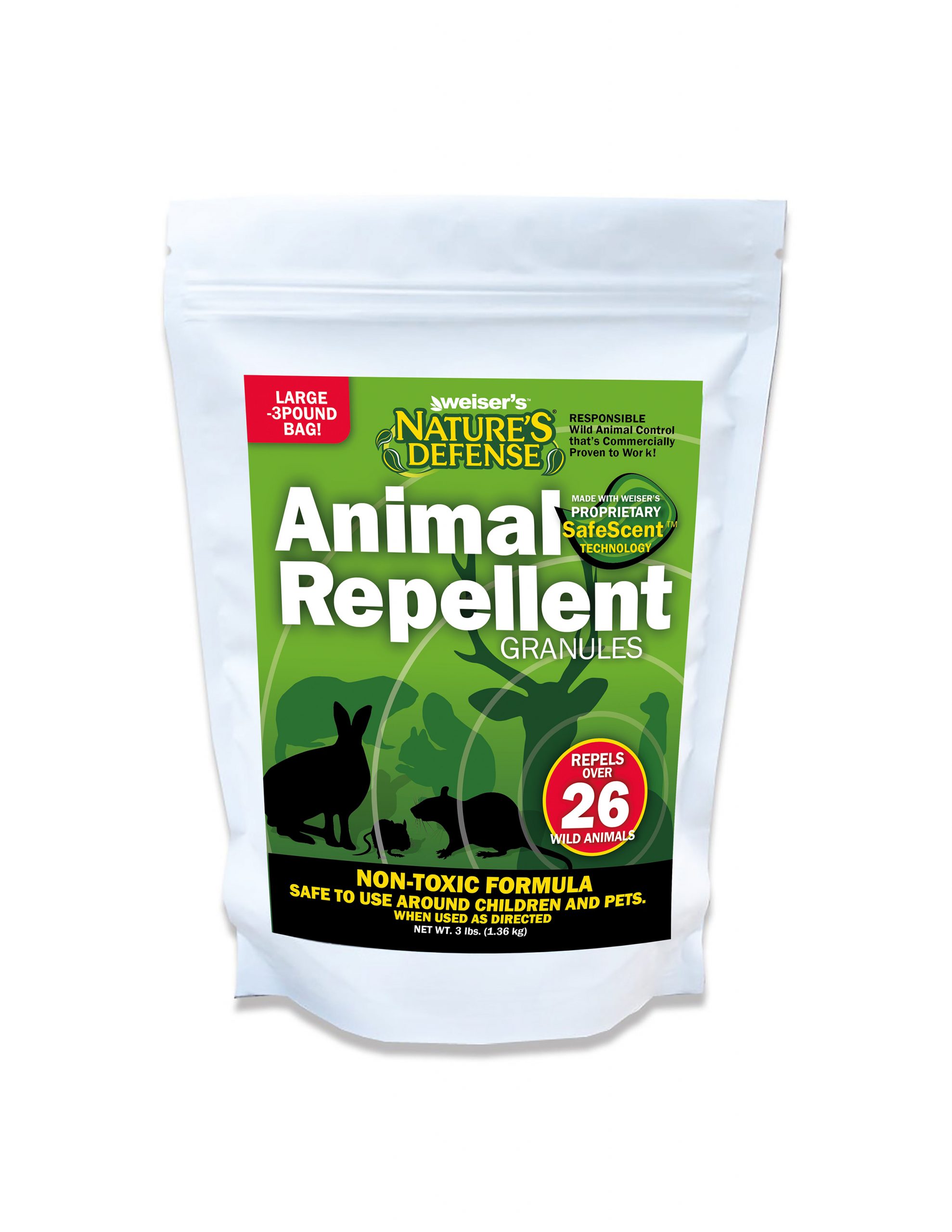 Nature’s Defense All-Purpose Granular Animal Repellent offers a truly organic, safe and proven effective repellent that drives 26 different animals and pests away from your home or business and prevents them from returning.